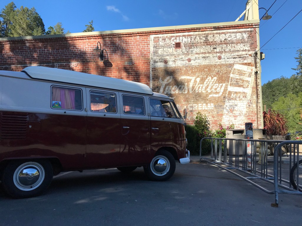I drove this road so many times with my friend Bob in Old Blue, his Chrysler, and I never travel it without thinking of him. Now Robert is getting MORE coffee in Boonville, or as the people of Boonville past would have called it, a horn of zeese (they once spoke a dialect in Boonville called Boont, and that is the only phrase I ever learned). We also saw a bus in Geyserville!