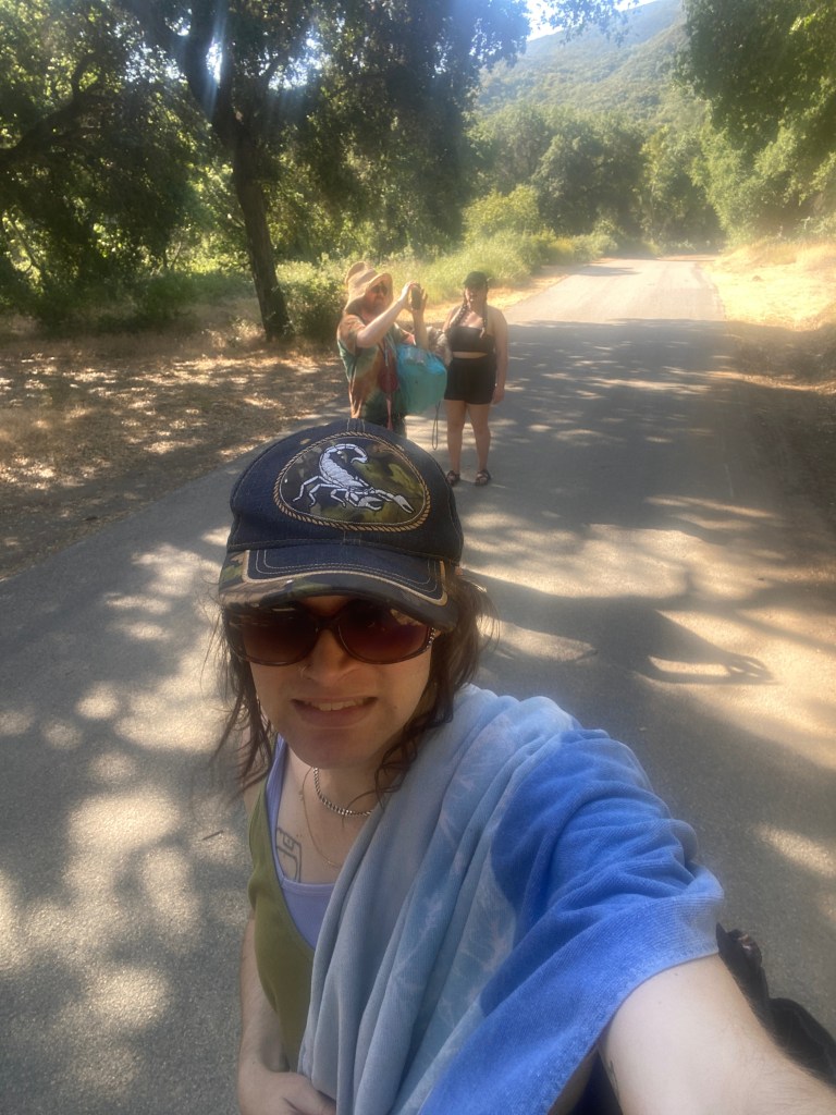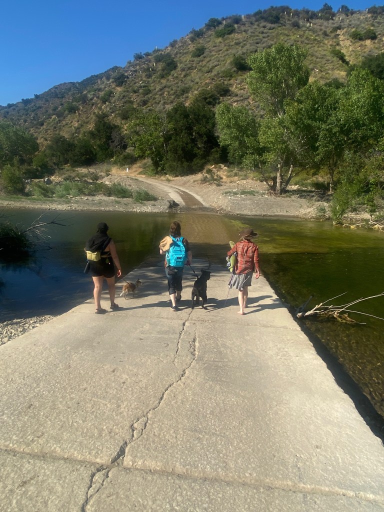 Here’s how it went: long dusty road, water crossing, Harold rejoicing, me trying to remember the path, all of us imagining false memories of being there before, all the time the pools of Red Rock and beyond seeming just in sight. And so we walked. And walked. Wildflowers and Poison Oak to accompany us, and the long road, and we walked. At some point Ruby had the brilliant idea to check our location and destination, as the sky was getting darker, late afternoon, but only a mile more to Red Rocks, she said. Then we were there, Red Rocks the closed campground, and I realized that these miles we used to drive, to park past this…and then, finally we turned around. The sun had gone west in the sky, the only thing left was wanting to be home or in the campsite, and we admitted defeat.