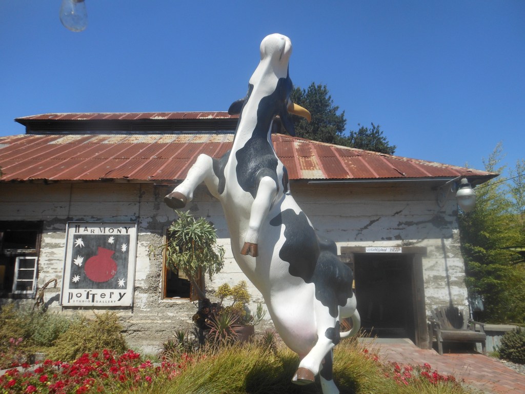 We also stopped at what I call Coyote Jaw (because once during a beach clean-up we found one there), a beach on the headlands near Harmony, Harmony, Harmony of the great ice cream by the Buddha in the shade and the stained glass sea turtle) and we walked the paths, forded the tiny stream, and made our way down to my favorite shell and pebble beach, and there we did find glorious shells and pebbles. Returning to the road we met a man with a Golden Retriever, and he was curious about our visit and why people were there. “You’re local? “ he said, and I said no, just a 20 year visitor, and he said “ I thought only locals knew about this place.”