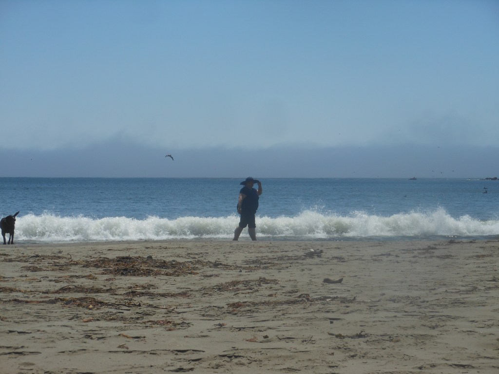 But the next day after bath and the Cow Tipper, we knew where we were headed: Hearst State Beach. It’s a weird beach, really. The only way I know about it was a long ago visit to the dog park in Cambria with my Jack Russell, Pebbles, and a man telling us about the dog places in the area. “You can totally have dogs there,” he said, when all of the beaches we had found were closed to dogs to protect the Snowy Plover. “Just go past the pilings from the old pier, and it is cool,” he said, and so it was.