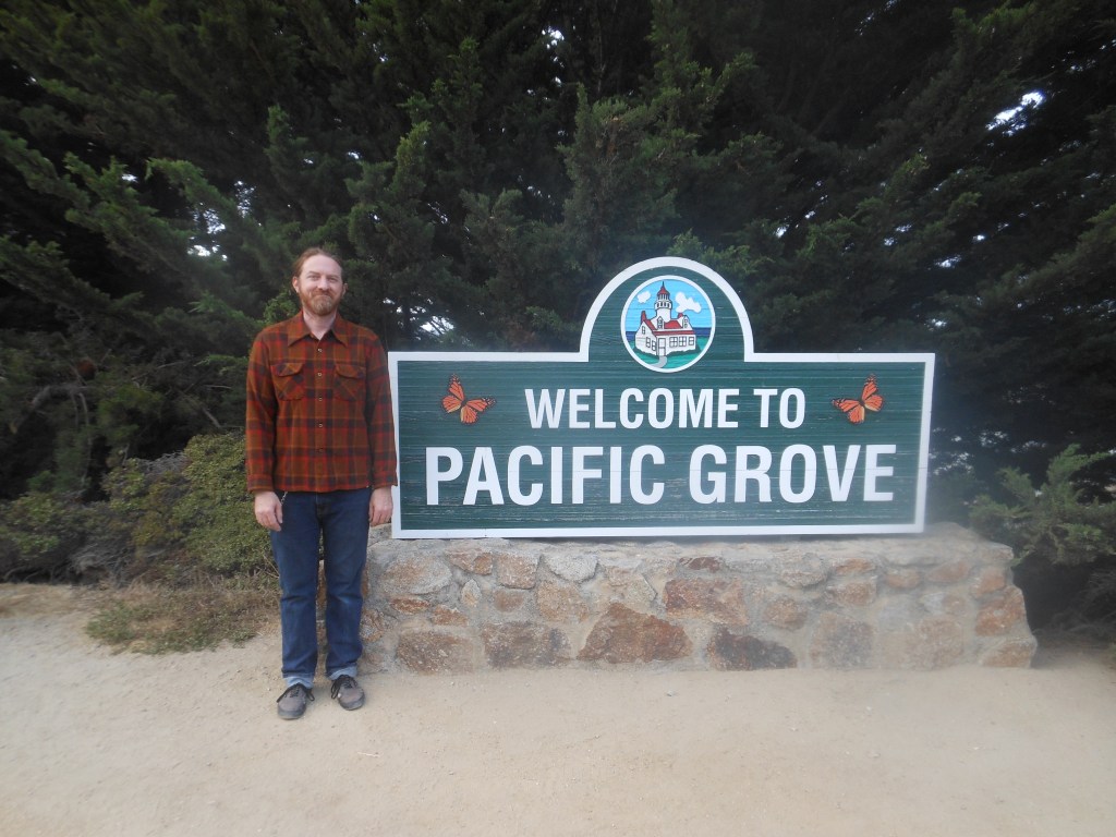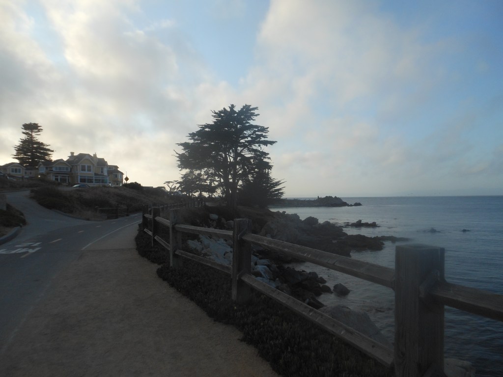 The good Old G-16 took us through weird canyons and ridges and then the houses got nicer and fancier, as evidenced by expensive gates, and then we were in the Land of the Rich People, AKA Carmel Valley. I kept thinking, “How can some people have so much and some so little” as we arrived in Carmel proper. After some confusion with our map and the best way to get to Pacific Grove, a spatial confusion regarding Pacific Grove that would persist, we arrived at Borg’s by the beach at Lover’s Point.