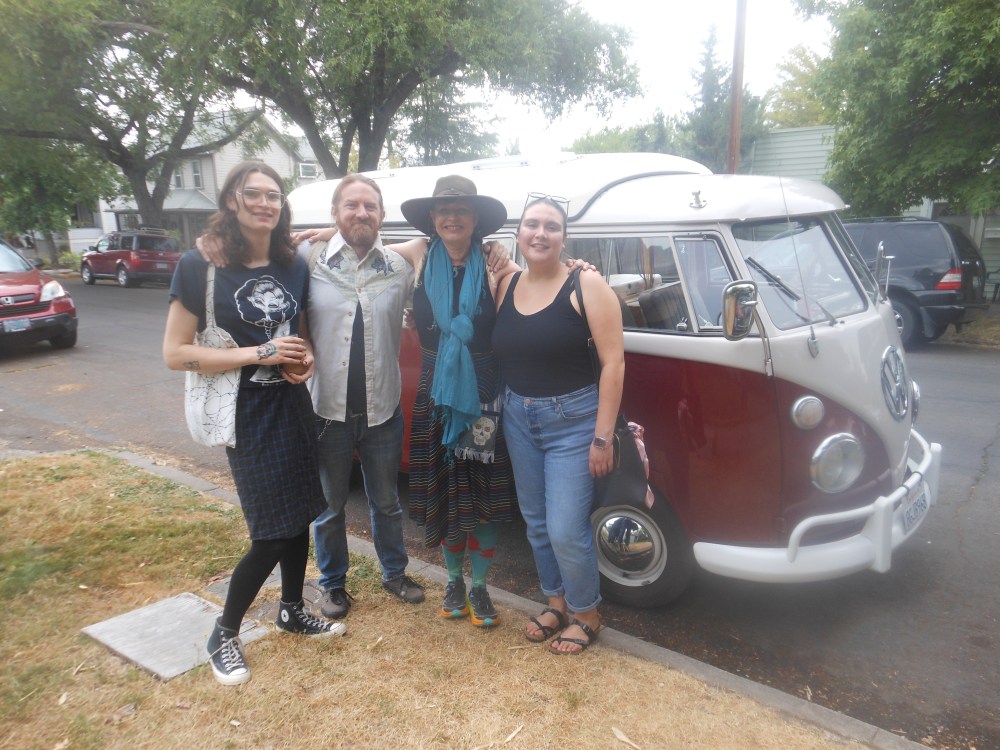 We packed up our room, a big undertaking given that we had moved all the camping stuff up to share the Bus at the memorial and were only a little late to meet the Swadley family for breakfast at Ruby’s. It meant so much to me that the Swadley’s, my adopted family, had come north for my father’s memorial, because although we always say we are family, and I know that I would do this for them, too, the effort of traveling from LA to Ashland for a memorial for a friend’s father, no matter how cherished, was amazing, but then the Swads had been at my wedding in Ashland, too.