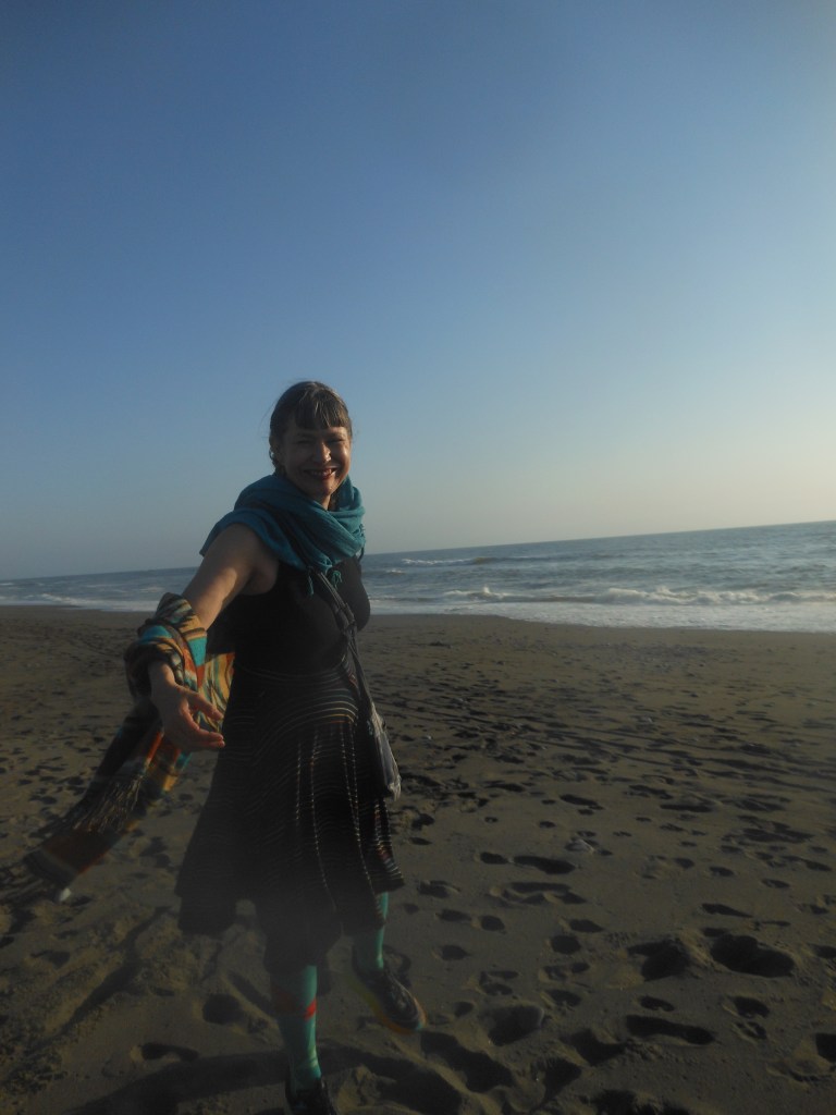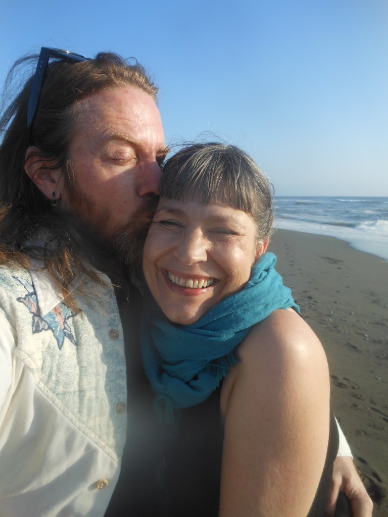 “I can’t believe we get this whole place,” I said, and Robert was shocked, too—a place like this just slightly gentrified rented for much more on the California coast, but we parked the Bus in the old garage and set out for the beach. I wanted to get rocks to paint for dad, having seen the memorial stones, and after a conversation with yet another Bus guy, his wife patiently waiting while Robert and the man talked Bus, we were off to the beach.